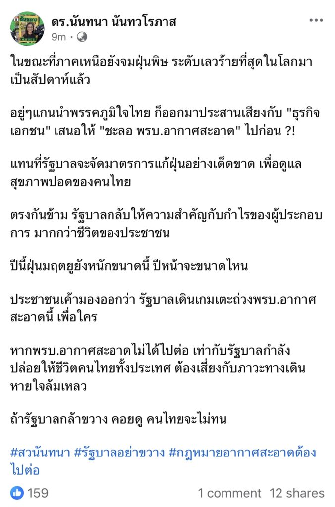 สว.นันทนา ซัด แกนนำภูมิใจไทย ทำตรงกันข้าม! ชะลอ พรบ.อากาศสะอาด ตอนภาคเหนือจมฝุ่นพิษ