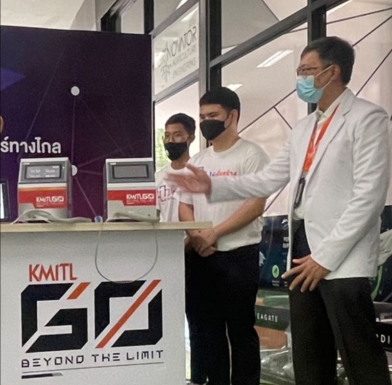 เพื่อรองรับผู้ป่วยติดเชื้อในปอดในภาวะฉุกเฉิน ทั้งอยู่ระหว่างการส่งตัวหรือรอเข้ารับการรักษาด้วยเครื่องช่วยหายใจของโรงพยาบาล และต่อเนื่องกับเครื่องช่วยหายใจในภาวะฉุกเฉินขนาดเล็ก (Transport Ventilator – KNIN) ที่ออกแบบให้สามารถใช้งานง่าย สะดวกต่อการเคลื่อนย้ายในกรณีฉุกเฉิน อีกทั้งยังรองรับการทำงานได้หลายโหมด ซึ่งในปัจจุบันได้พัฒนาออกมารวม 4 รุ่น ทั้งนี้ ที่ผ่านมา สจล. ได้ส่งมอบนวัตกรรมทางการแพทย์แก่โรงพยาบาลและหน่วยงานสาธารณสุขทั่วประเทศมากกว่า 300 แห่ง เป็นจำนวนกว่า 1,000 ชิ้น
