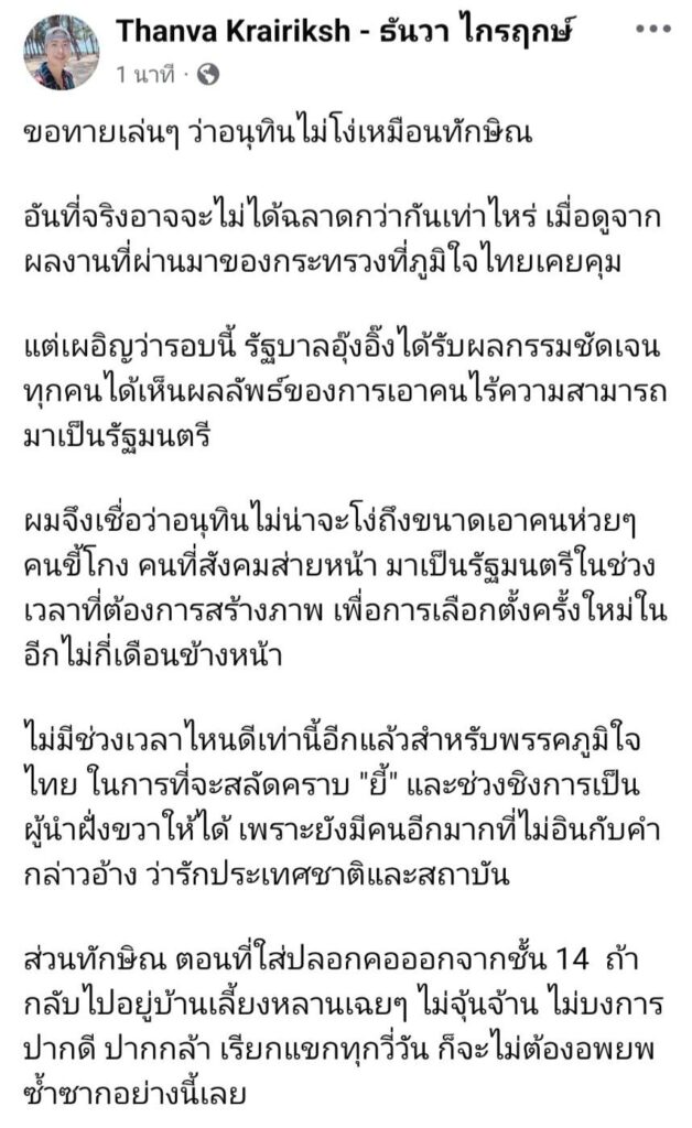 ธันวา เชื่อ บทเรียน ทักษิณ มากมายเกินพอ ถ้า อนุทิน ไม่โคตรโง่ เขาจะไม่เดินซ้ำรอยแน่นอนทะเลาะกันอยู่ได้ ประชาชนจะตายx่าหมดแล้ว