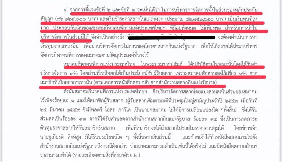 ผมขอยกความส่วนหนึ่งของคำชี้แจงของ ที่สมาคมกีฬาคนพิการแห่งประเทศไทยได้เคยชี้แจง และก็ประสบปัญหาเรื่องการจัดการสลากเช่นเดียวกัน
