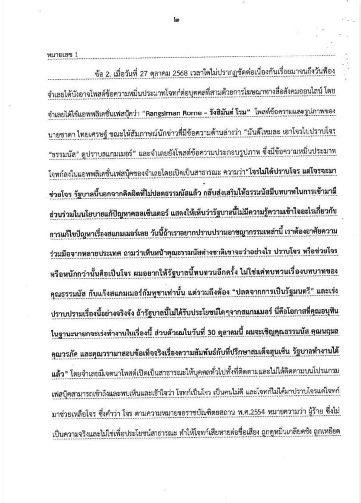 News รังสิมันต์ โรม เผย ธรรมนัสฟ้องหมิ่นประมาท 100 ล้านบาท ลั่น ใช้กฎหมายปกปิดฝ่ายตรวจสอบ Published 2 เดือน ago on ธันวาคม 5, 2025 By Admin_Tojo Share Tweet รังสิมันต์ โรม เปิดเอกสาร ธรรมนัส ฟ้องหมิ่นประมาท เรียกเงิน 100 ล้านบาท ผู้สื่อข่าวโตโจ้นิวส์รายงานว่า นายรังสิมันต์ โรม สส.บัญชีรายชื่อ พรรคประชาชน โพสต์ข้อความผ่านเอ็กซ์ ระบุว่าไหนๆก็เคยได้พูดว่า ร้อยเอกธรรมนัสฟ้องผมที่พะเยา ก็ขอเอาคำฟ้องมาเผยแพร่ให้พี่น้องประชาชน และผู้สนใจด้านกฎหมายได้อ่าน เราจะได้เห็นถึงพฤติกรรมของผู้ที่เป็นรองนายกรัฐมนตรีว่ามีพฤฒิกรรมการใช้กฎหมายเพื่อปิดปากฝ่ายตรวจสอบอย่างไร ผมต้องย้ำว่าวิธีการแบบนี้ไม่ได้เกิดขึ้นกับ สส.ฝ่ายค้านเท่านั้น แต่เกิดขึ้นทั่วไปต่อพี่น้องสื่อมวลชนและพี่น้องประชาชนอีกด้วย ผมยืนยันอีกครั้งว่า ผมต้องการปกป้องประเทศไทยจากทุนเทายึดประเทศ ผมออกมาพูดเรื่องนี้แม้จะรู้ว่าอำนาจมืดนั้นยิ่งใหญ่เพียงไร น่าคิดว่าร้อยเอกธรรมนัสกำลังทำอยู่เป็นการปกป้องใคร “ชาติ หรือ ทุนเทาสแกมเมอร์” #เพื่อไม่พลาดข่าวสารดีๆ อย่าลืมกดติดตามพวกเรา TOJO NEWS Share this:TwitterFacebookLineLike this:Like กำลังโหลด... Related Topics:#TOJONEWS #โตโจ้นิวส์Featured Up Next พูดเลยตรงๆ! ตรีชฎา รับผู้สมัคร สส.เพื่อไทย เหตุคนเดิมย้ายไปพรรคอื่น! Don't Miss เอ๊ะ!! เต้ สงสัย เป้าหมายจริง คงไม่ใช่ นัทปง Continue Reading Advertisement Advertisement Latest Trending Videos News24 นาที ago แจกเงินวันละ 9 ล้าน แบบประชานิยม หากได้ผลจริง ประเทศคงพัฒนาไปนานแล้ว News59 นาที ago ตรีนุช เอาด้วย เปิดทาง!! ประกันสังคมตั้งมา 31 ปีแล้ว ถึงเวลาปฏิรูป News2 ชั่วโมง ago แจก9ล้าน ไม่ใช่นโยบาย มันซื้อเสียงแบบใหม่ มันคือการเอาเงินภาษีประชาชนมาใช้สร้างฐานเสียง News3 วัน ago ปานเทพ เปิดนโยบายพรรคประชาชน เห็นชัด! จะเพิ่มอำนาจการเมืองอยู่เหนือกองทัพ News2 วัน ago “พีระพันธุ์” โต้ Fact Check นักวิชาการวงนอก! News2 วัน ago ปลุกด้อมส้ม!! เตรียมไฟลุก! “พิธา” บินมาแล้ว! CLIP2 เดือน ago ฟังข่าวดีก่อนสิ้นปี 2568 (random clip) CLIP2 เดือน ago เช็คพลังงาน ดึงดูดความรัก Horoscope2 ปี ago ดวงความรักที่จะเกิดขึ้นกับคุณ กับ อ.สาธกา พรหมญาณ