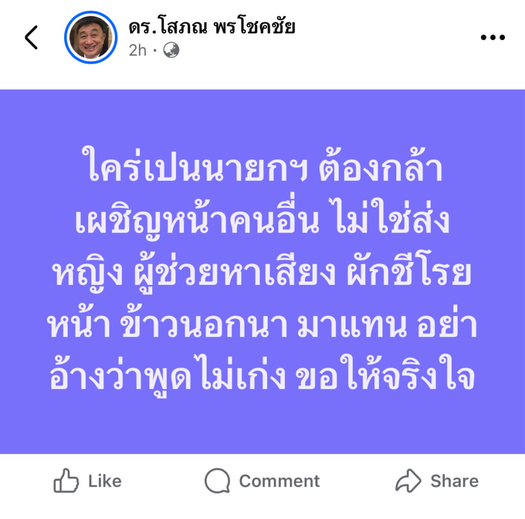 ดร.โสภณ โพสต์สะเทือน อยากเป็นนายกฯ ก็ต้องกล้าเผชิญหน้าคนอื่น อย่าอ้างว่าพูดไม่เก่ง