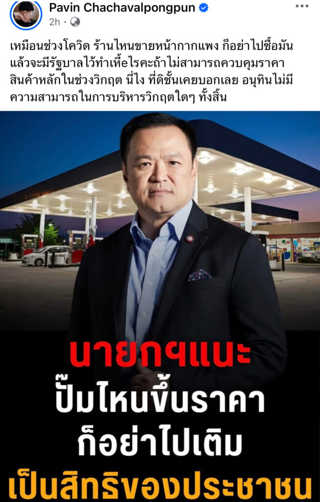 ปวิน ฟาด อนุทิน เหมือนที่คิดไว้ ไม่มีความสามารถในการบริาหารวิกฤต ไม่ต่างจากตอนโควิด