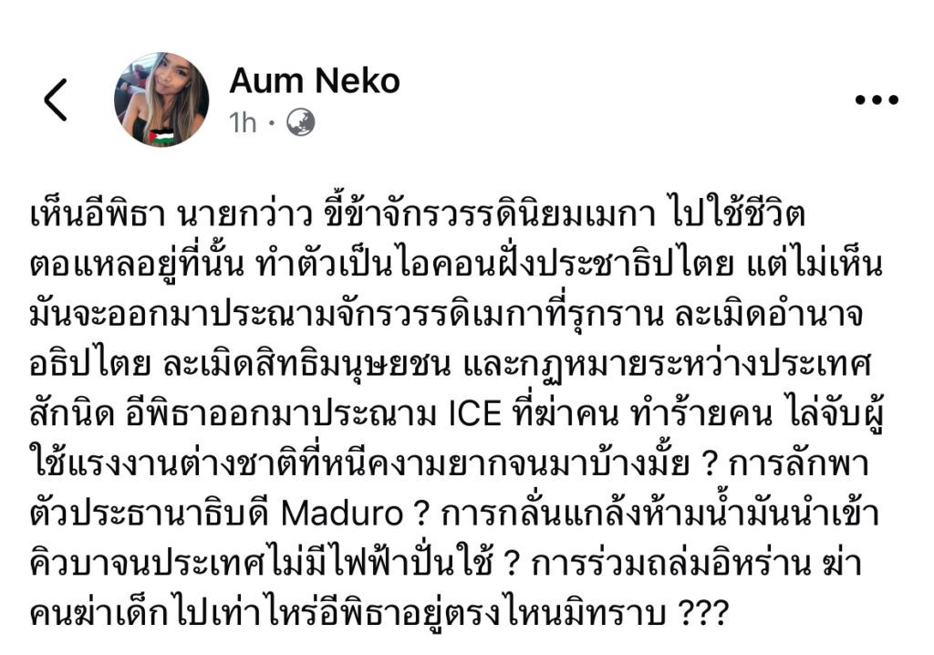อั้ม เนโกะ ซัดแหลก! พิธาทำตัวเป็นไอคอนประชาธิปไตย แต่ไม่เห็นจะออกมาประฌามอเมริกากลั่นแกล้งชาติอื่น