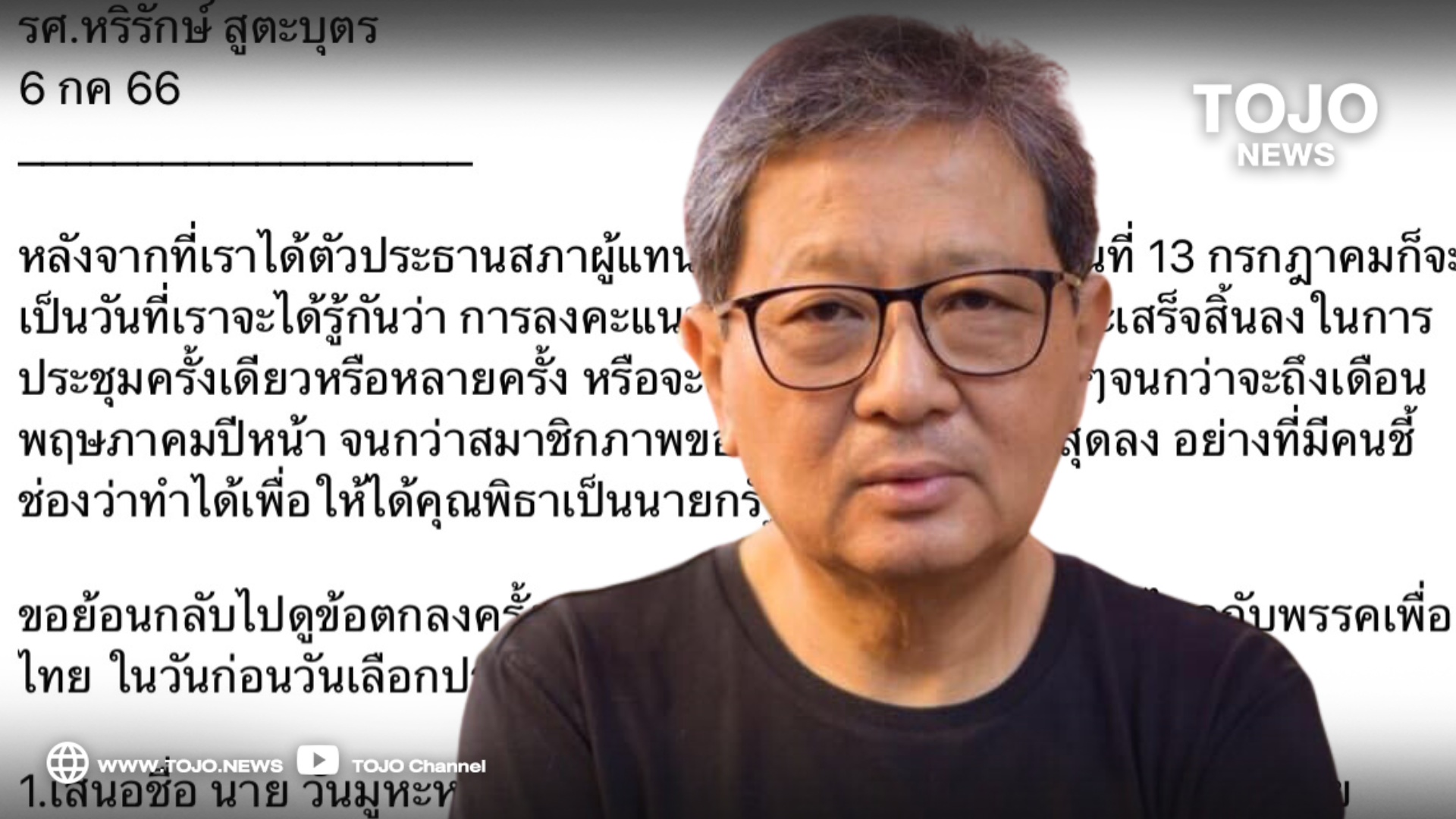 รศ.หริรักษ์ อดีตรองอธิการ มธ. ย้อนดู 4 ข้อตกลง ก้าวไกล-เพื่อไทย เผย ต้องจับตาดู! กฎหมายนิรโทษกรรมคดีแสดงออกทางการเมือง