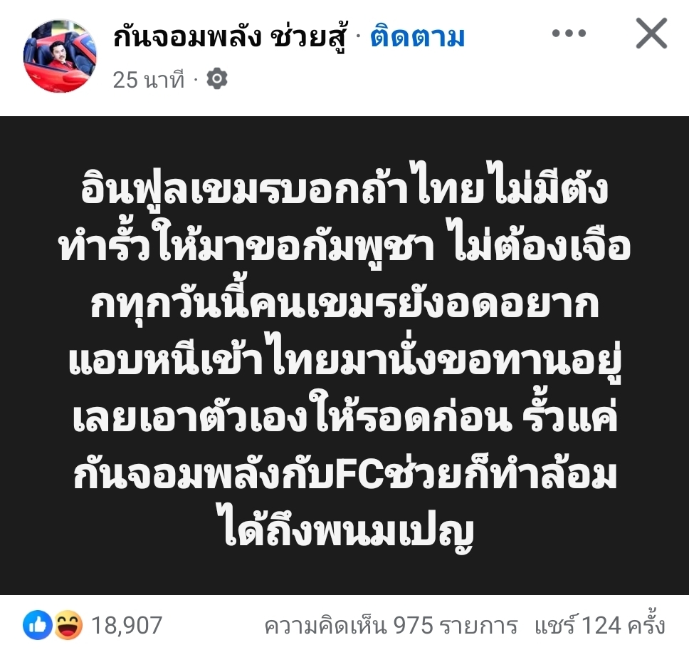 กันจอมพลัง สวนกลับ! อินฟูลเขมรบอกถ้าไทยไม่มีตังทำรั้วให้มาขอกัมพูชา