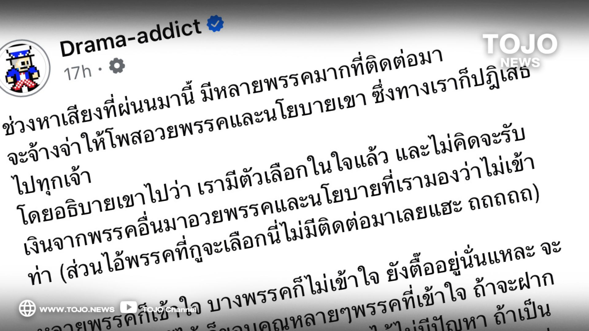 จะจ้างจ่าให้โพสอวยพรรคและนโยบายเขา ซึ่งทางเราก็ปฎิเสธไปทุกเจ้า