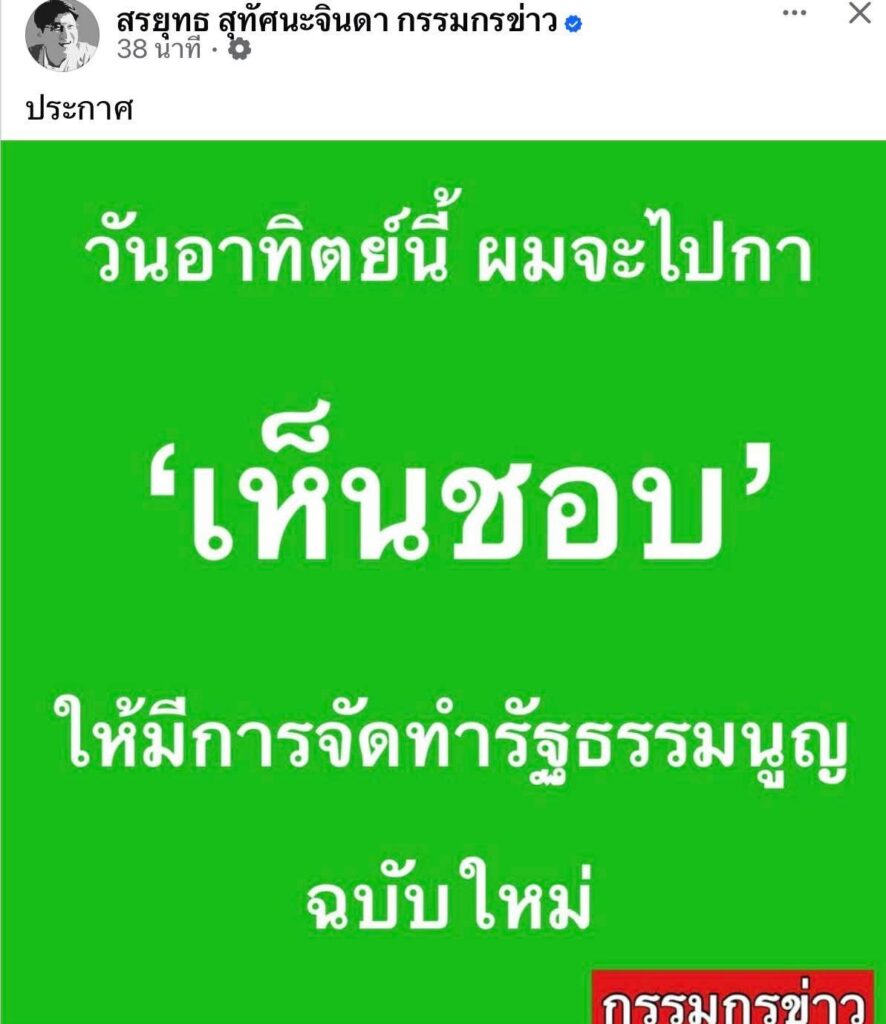 ผู้สื่อข่าวโตโจ้นิวส์รายงานว่า นายสรกล อดุลยานนท์ หรือ หนุ่มเมืองจันท์ นักเขียนและคอลัมนิสต์ชื่อดัง โพสต์ข้อความผ่านเฟซบุ๊ก โดยระบุว่า