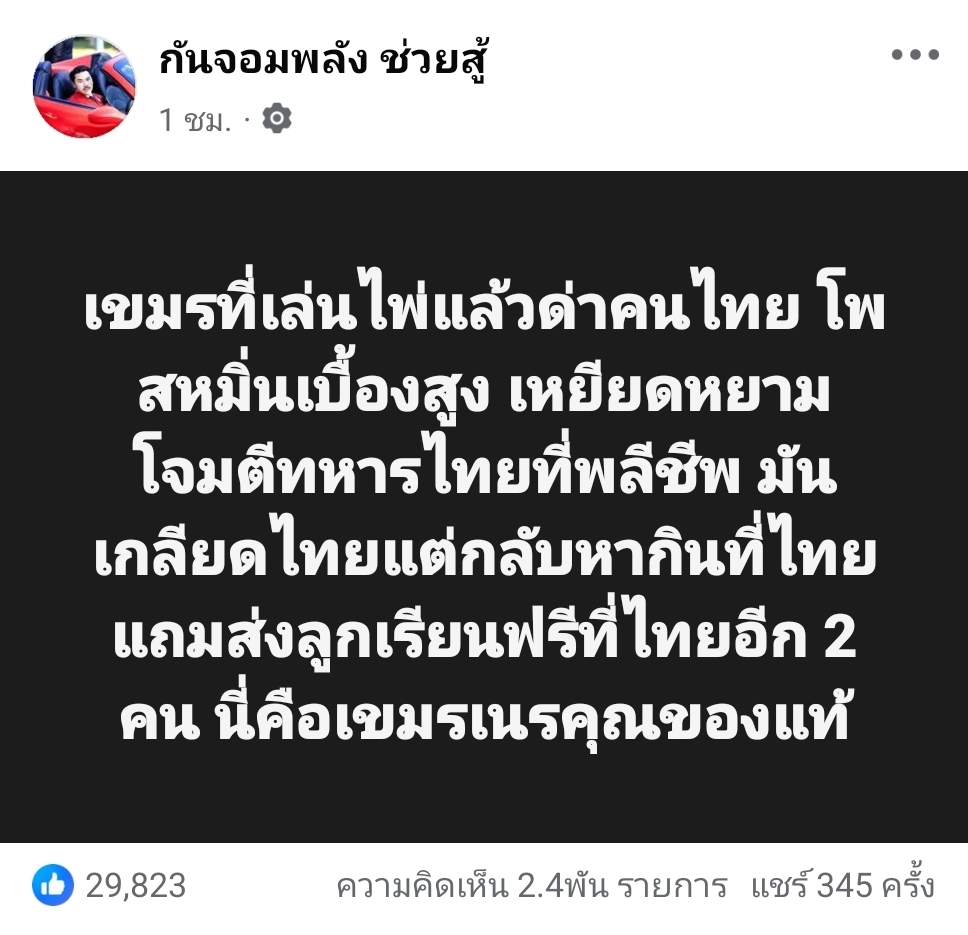 เขมรที่เล่นไพ่แล้วด่าคนไทย โพสหมิ่นเบื้องสูง เหยียดหยามโจมตีทหารไทยที่พลีชีพ มันเกลียดไทยแต่กลับหากินที่ไทย แถมส่งลูกเรียนฟรีที่ไทยอีก 2 คน นี่คือเขมรเนรคุณของแท้