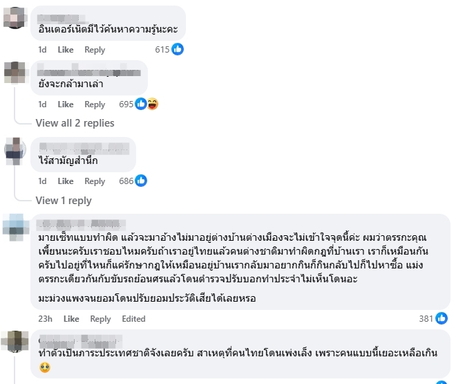 ต่อมา โพสต์ดังกล่าวถูกแชร์เป็นจำนวนมาก โดยชาวเน็ตส่วนใหญ่ไม่เห็นด้วยกับการกระทำดังกล่าว เช่น อินเตอร์เน็ตมีไว้ค้นหาความรู้นะคะ, ไร้สามัญสำนึก, มายเซ็ทแบบทำผิด แล้วจะมาอ้างไม่มาอยู่ต่างบ้านต่างเมืองจะไม่เข้าใจจุดนี้ค่ะ ผมว่าตรรกะคุณเพี้ยนนะครับเราชอบไหมครับถ้าเราอยู่ไทยแล้วคนต่างชาติมาทำผิดกฎที่บ้านเรา เราก็เหมือนกันครับไปอยู่ที่ไหนก็แค่รักษากฎให้เหมือนอยู่บ้านเรากลับมาอยากกินก็กินกลับไปก็ไปหาซื้อ แม่งตรรกะเดียวกันกับขับรถย้อนศรแล้วโดนตำรวจปรับบอกทำประจำไม่เห็นโดนอะ