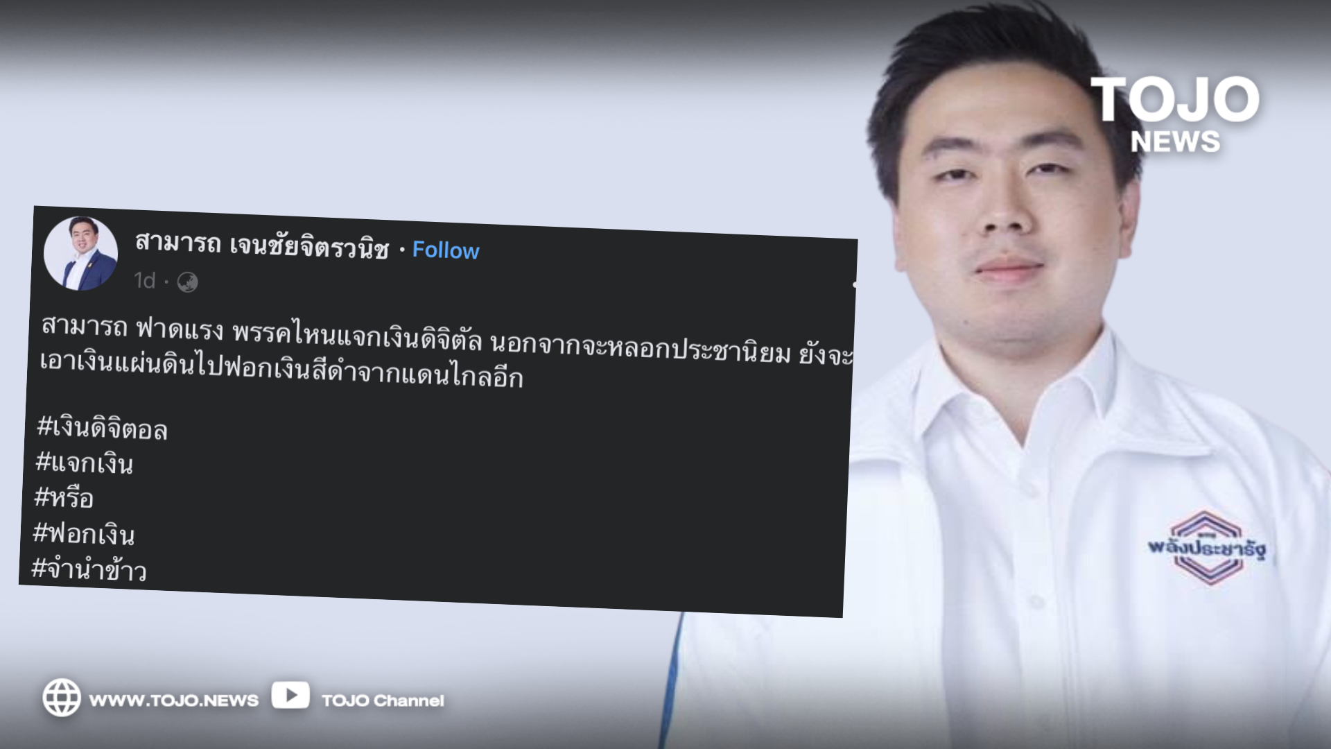 ผู้สื่อข่าวโตโจ้นิวส์รายงานว่า 7 เม.ย.66 นายสามารถ เจนชัยจิตวนิช อดีตผู้ช่วยรัฐมนตรีว่าการกระทรวงยุติธรรม โพสต์เฟสบุ๊คผ่านรายการ สามารถ 5 นาที ถึงเรื่องการแจกเงินดิจิตัล โดยระบุว่า