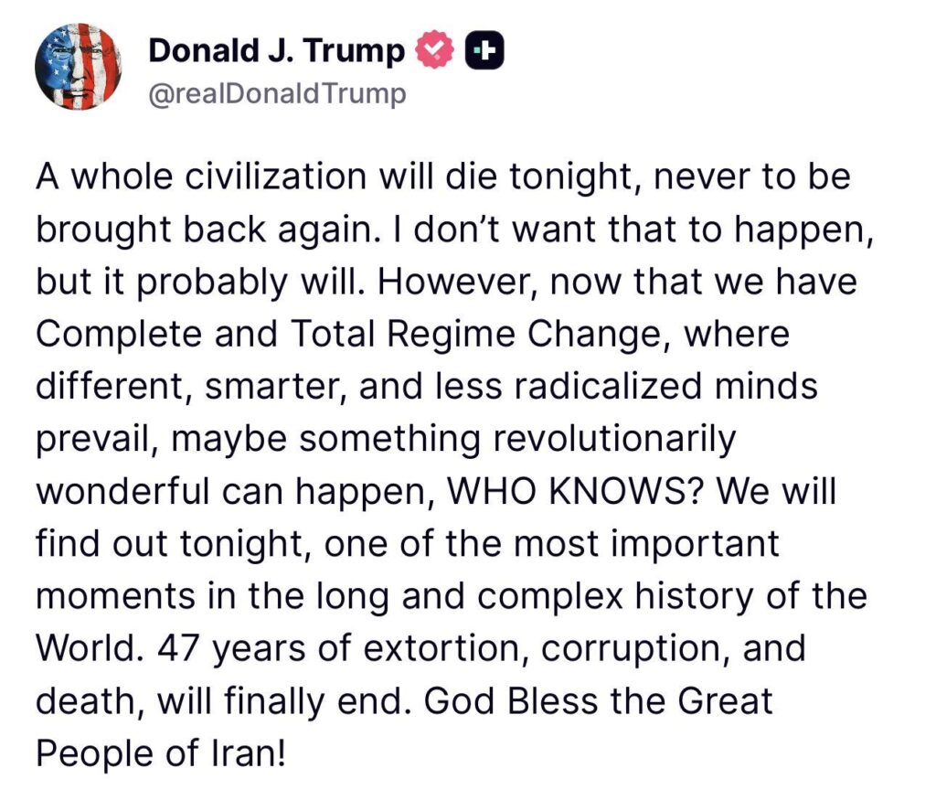 ทรัทป์ เคลื่อนไหว จะรู้กันคืนนี้ อารยธรรมทั้งจะล่มสลาย ไม่มีวันฟื้น