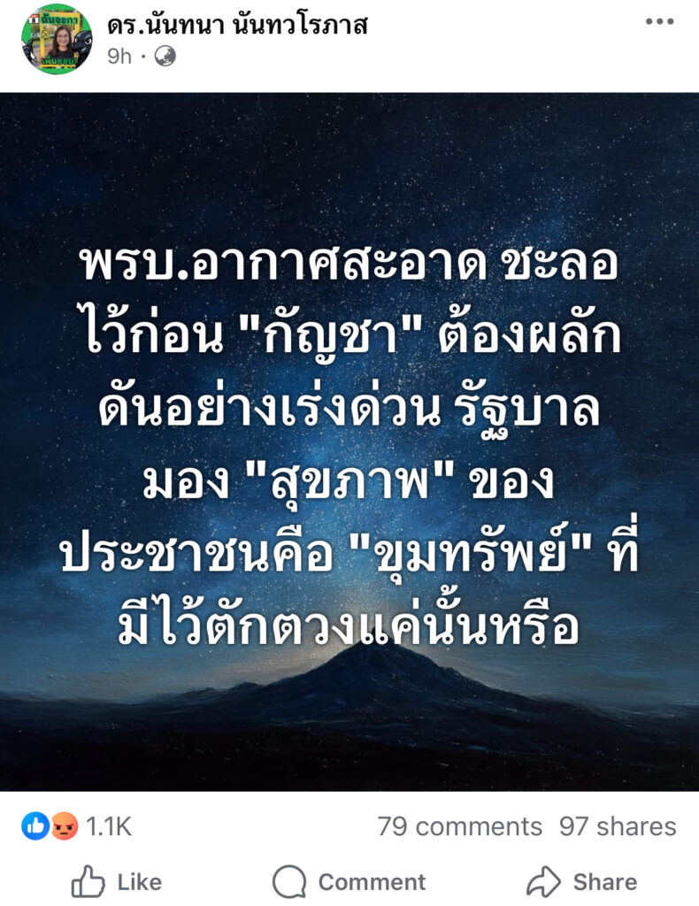 พรบ.อากาศสะอาด ชะลอไว้ก่อน “กัญชา” ต้องผลักดันอย่างเร่งด่วน รัฐบาลมอง “สุขภาพ” ของประชาชนคือ “ขุมทรัพย์” ที่มีไว้ตักตวงแค่นั้นหรือ