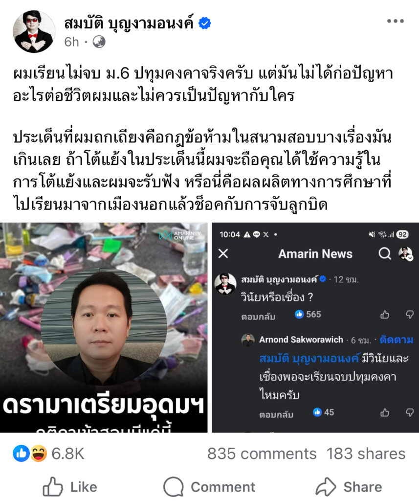 บก.ลายจุด ตอบโต้ ดร.อานนท์ ปมเรียนจบ ม.6 ย้อนถาม! หรือนี่คือผลผลิตของการเรียนจบเมืองนอก