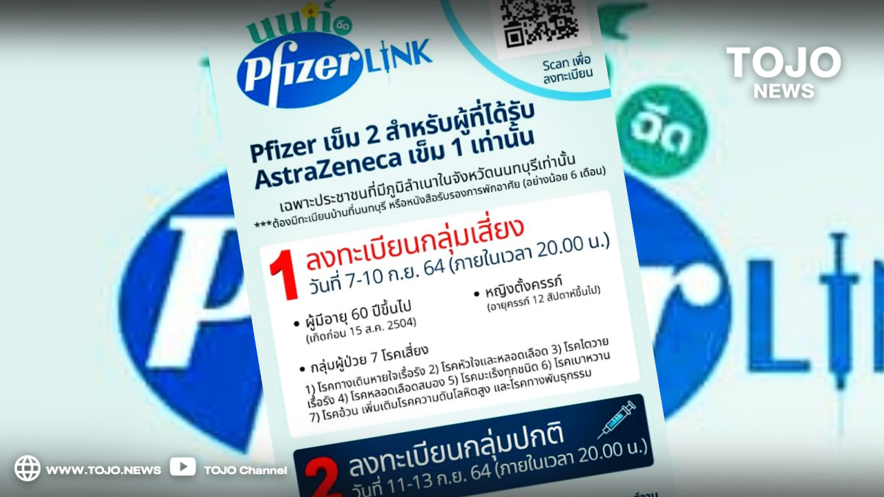 ผู้สื่อข่าวโตโจ้นิวส์รายงานว่า นนท์ Pfizer Link เปิดลงทะเบียน Pfizer เข็ม 2 สำหรับผู้ที่ได้รับ AstraZeneca เข็ม 1 เท่านั้น (โปรดอ่านเงื่อนไขโดยละเอียด)