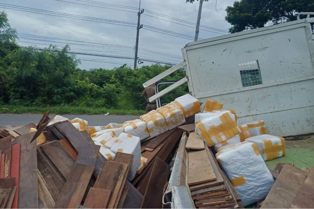 เมื่อไปถึงที่เกิดเหตุ เจ้าหน้าที่พบรถบรรทุก 4 ล้อ เสัยหลัก พลิกตะแคง อยู่เลนขวาทพบยาเสพติดให้โทษประเภท 1 (ยาบ้า) บรรจุอยู่ในลังโฟมซุกซ่อนปะปนมากับไม้ที่รถบรรทุกมาตกกระจายอยู่เต็มถนน