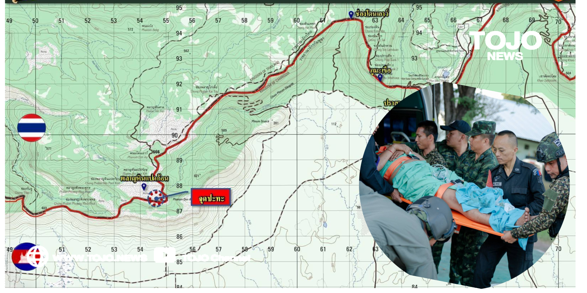 ผู้สื่อข่าวโตโจ้นิวส์รายงานว่า จากกรณีทหารกัมพูชาใช้อาวุธโจมตีฝ่ายไทย เมื่อ 7 ธ.ค. 68 เวลา 14.15 น. บริเวณพื้นที่ ภูผาเหล็ก–พลาญหินแปดก้อน อ.กันทรลักษ์ จ.ศรีสะเกษ ส่งผลให้มีกำลังพลได้รับบาดเจ็บ 2 นาย นั้น