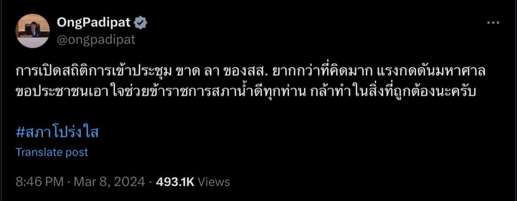 การเปิดสถิติการเข้าประชุม ขาด ลา ของสส. ยากกว่าที่คิดมาก แรงกดดันมหาศาล ขอประชาชนเอาใจช่วยข้าราชการสภาน้ำดีทุกท่าน กล้าทำในสิ่งที่ถูกต้องนะครับ