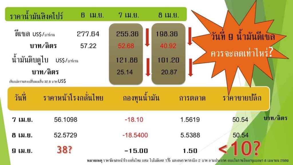 อ.ปานเทพ ชี้ หากราคาโรงกลั่นอ้างอิงราคาปิดสิงคโปร์วันนี้ พรุ่งนี้ ราคาหน้าโรงกลั่นไทย ก็ควรไม่เกิน 38 บาท