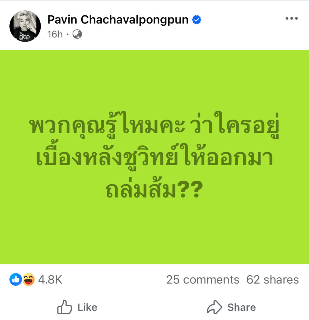 ปวิน โพสต์ปริศนา! ถามประชาชน รู้ไหมใครอยู่เบื้องหลังชูวิทย์