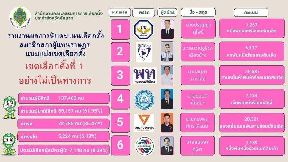 ทรงพล ผู้สมัคร สส.ชัยนาถ เคลื่อนไหว บัตรดีชัยนาถ เขต 1 มีส่วนต่าง 6,840 ใบ