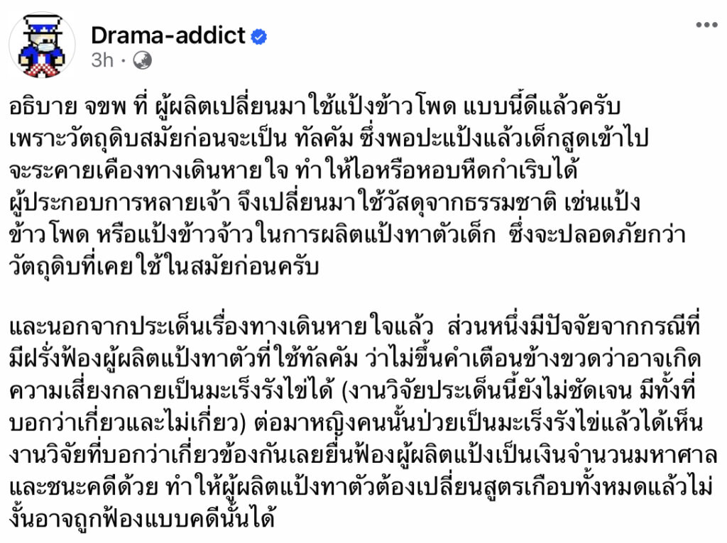 อธิบาย จขพ ที่ ผู้ผลิตเปลี่ยนมาใช้แป้งข้าวโพด แบบนี้ดีแล้วครับ