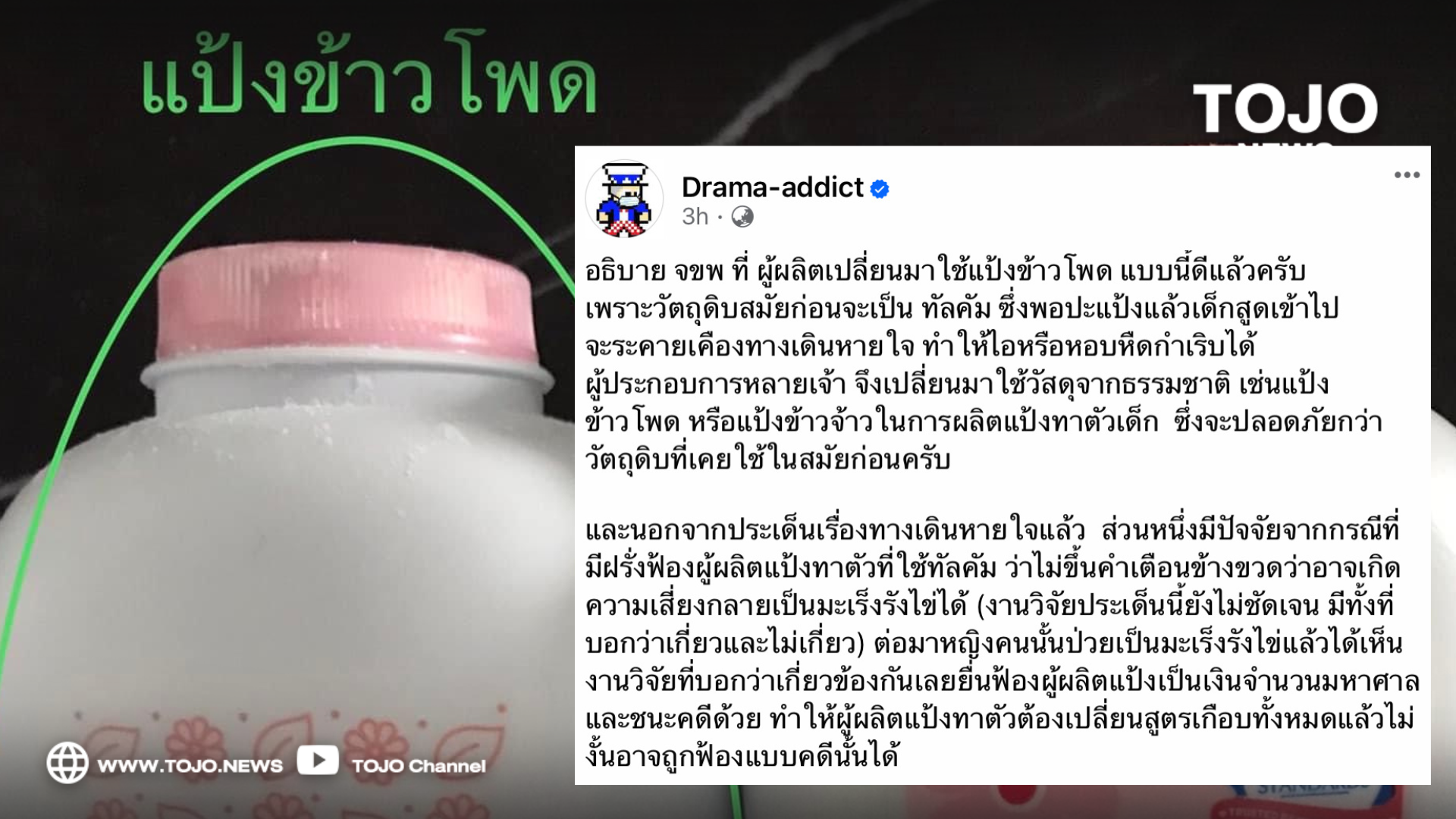 เพราะวัตถุดิบสมัยก่อนจะเป็น ทัลคัม ซึ่งพอปะแป้งแล้วเด็กสูดเข้าไป