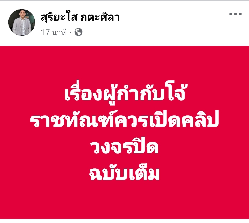 ผู้สื่อข่าวโตโจ้นิวส์รายงาน ดร.สุริยะใส กตะศิลา คณบดีวิทยาลัยผู้นำและนวัตกรรมสังคม มหาวิทยาลัยรังสิต โพสต์เฟซบุ๊กระบุว่า…
