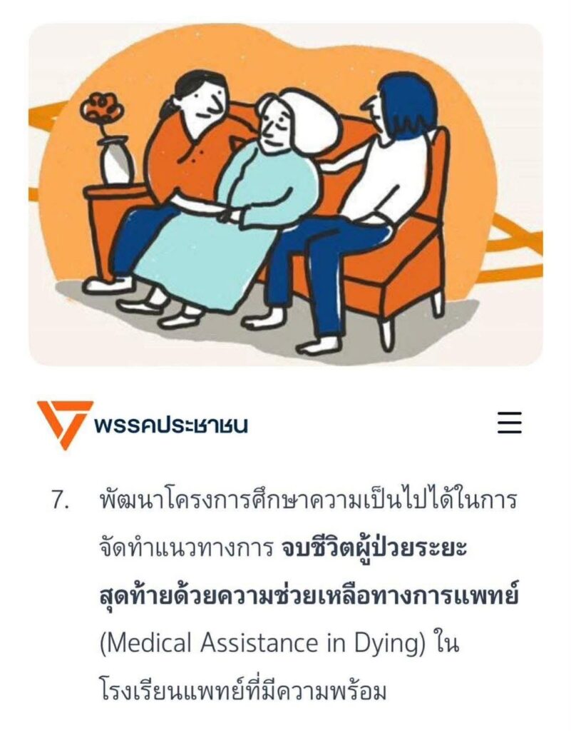 เพจดัง เห็นด้วย! พรรคประชาชนเสนอนโยบายศึกษาการทำการุณยฆาต ให้ผู้ป่วยใช้สิทธิ์ในการจากไปอย่างสงบ