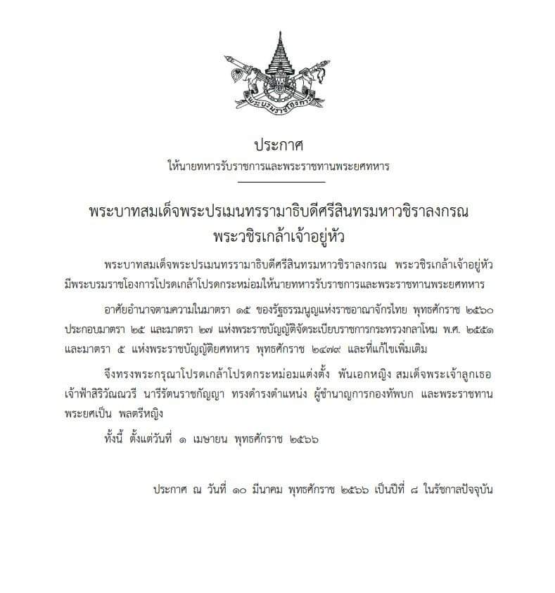 ประกาศ ณ วันที่ 10 มีนาคม พุทธศักราช 2566 เป็นปีที่ 8 ในรัชกาลปัจจุบัน