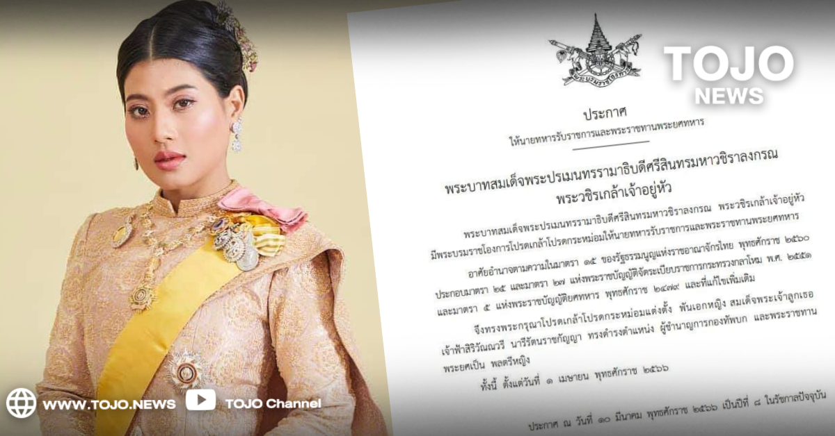 ผู้สื่อข่าวโตโจ้นิวส์รายงานว่า วานนี้ 11 มี.ค.66 เว็บไซต์ราชกิจจานุเบกษา เผยแพร่ประกาศระบุว่า พระบาทสมเด็จพระปรเมนทรรามาธิบดีศรีสินทรมหาวชิราลงกรณ พระวชิรเกล้าเจ้าอยู่หัว มีพระบรมราชโองการโปรดเกล้าโปรดกระหม่อมให้นายทหารรับราชการและพระราชทานพระยศทหาร