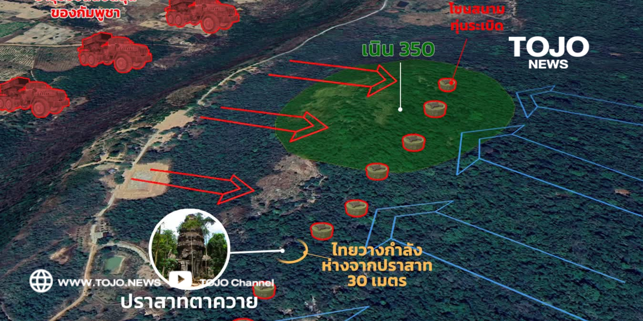ผู้สื่อข่าวโตโจ้นิวส์รายงานว่า เพจกองทัพบกทันกระแส โพสต์เมื่อวันที่ 10 ส.ค.68 โดยมีข้อความและภาพกราฟฟิก บริเวณปราสาทตาควาย ระบุว่า…
