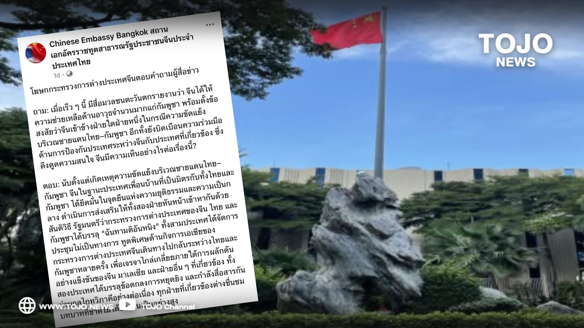 สถานทูตฯ จีน ชี้แจงกระแสข่าวส่งอาวุธให้กัมพูชา ยันจุดยืน เป็นกลาง ให้ทั้งสองฝ่ายเดินหน้าเจรจากันอย่างสันติ