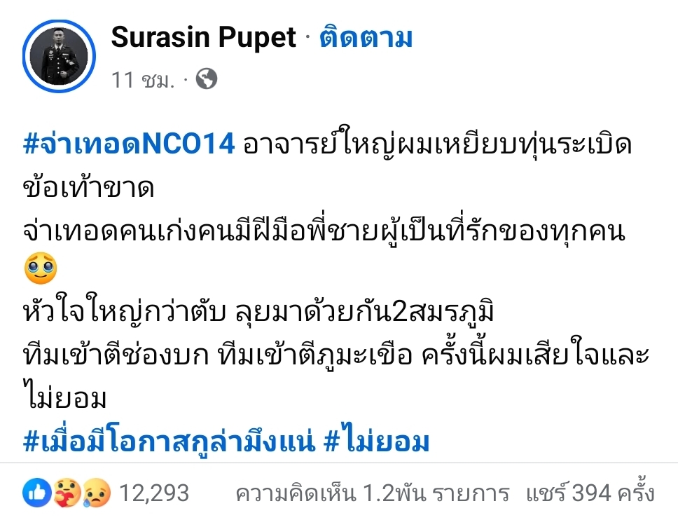 ผู้สื่อข่าวโตโจ้นิวส์รายงานว่า ผู้ใช้เฟซบุ๊กรายหนึ่ง ซึ่งเป็นพี่น้องทหาร เพื่อนร่วมรบทหารแนวหน้า โพสต์ระบุ…
