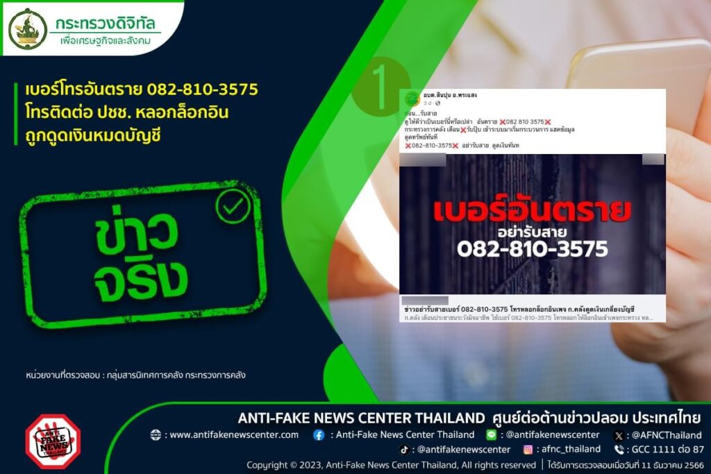 กระทรวงการคลัง เตือน! มิจฉาชีพใช้เบอร์ 082-810-XXXX อ้างเป็นเจ้าหน้าที่ ลวงให้ยกเลิกสิทธิ์