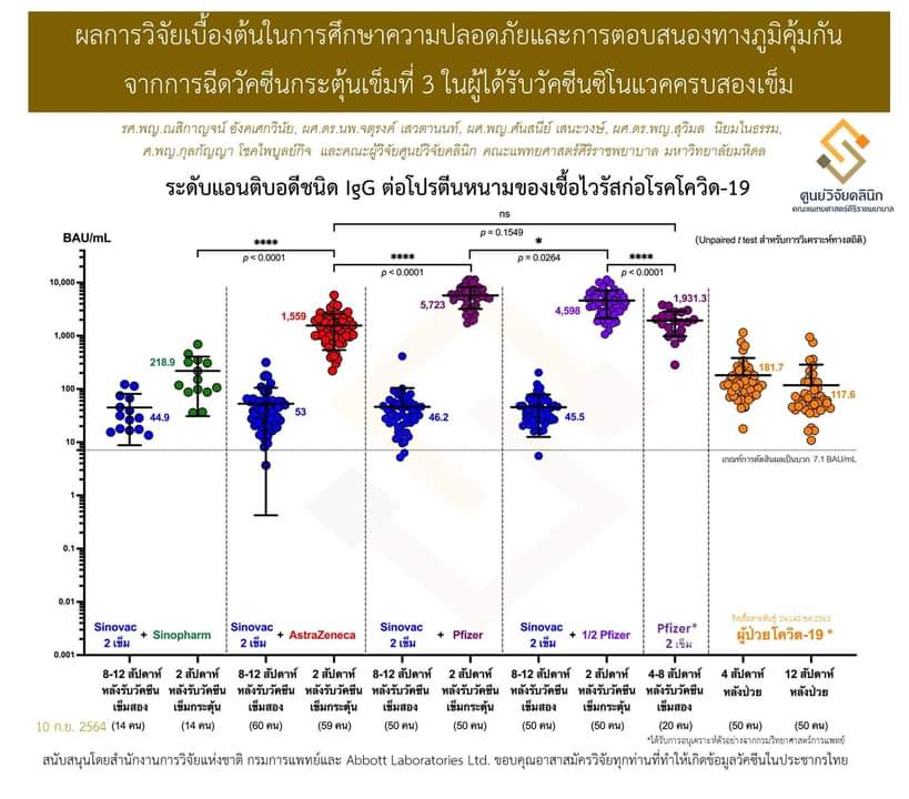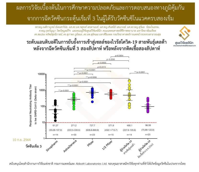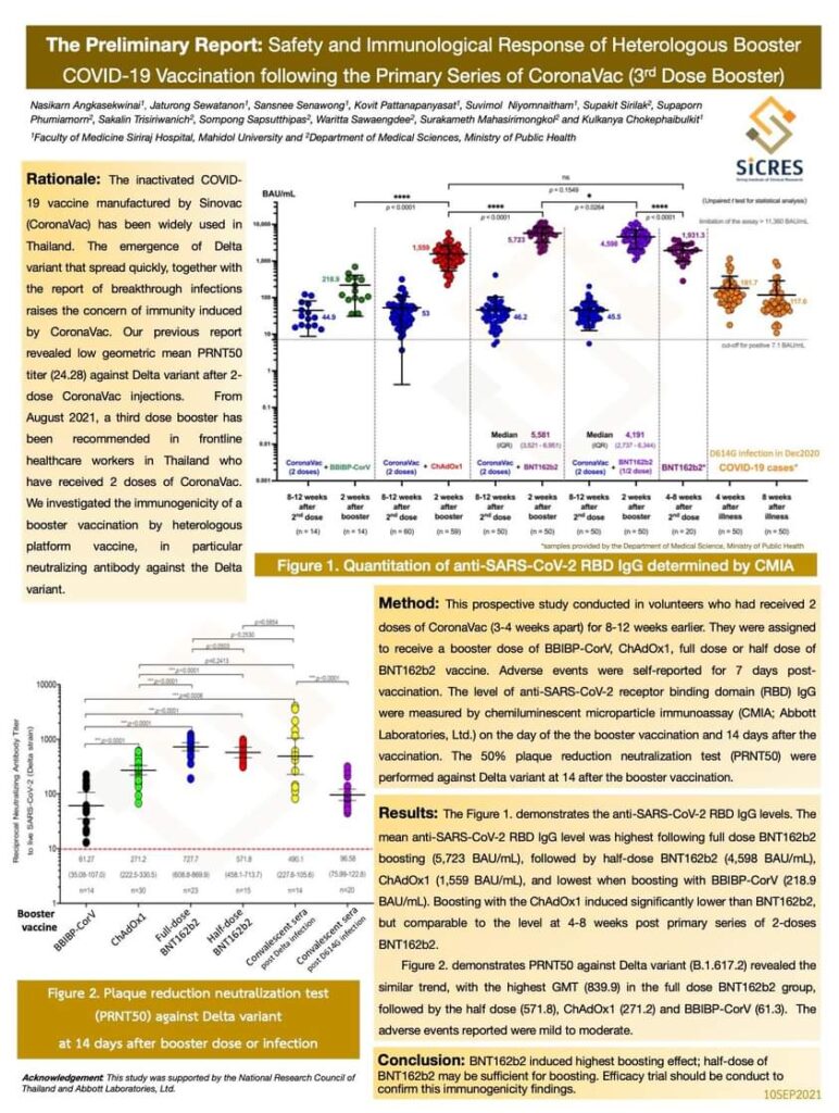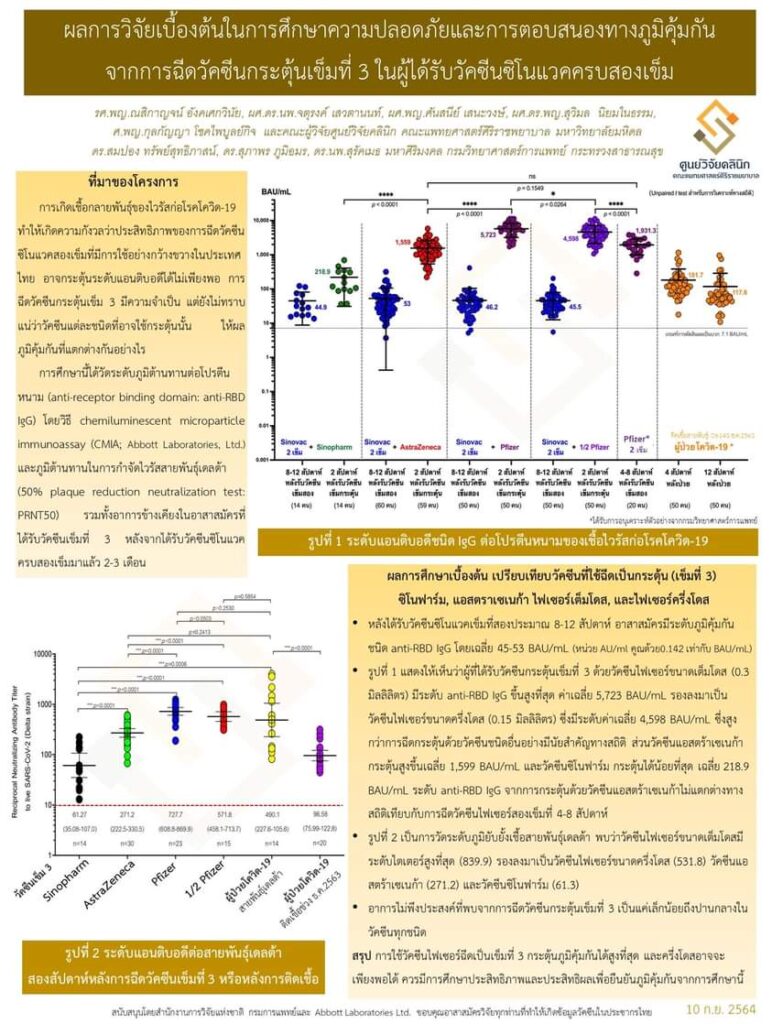 ศิริราชเปิดผลการวิจัยโครงการฉีดวัคซีนกระตุ้นเข็ม 3 ในผู้ที่ได้รับวัคซีนซิโนแวคครบ 2 เข็ม ด้วยวัคซีนไฟเซอร์