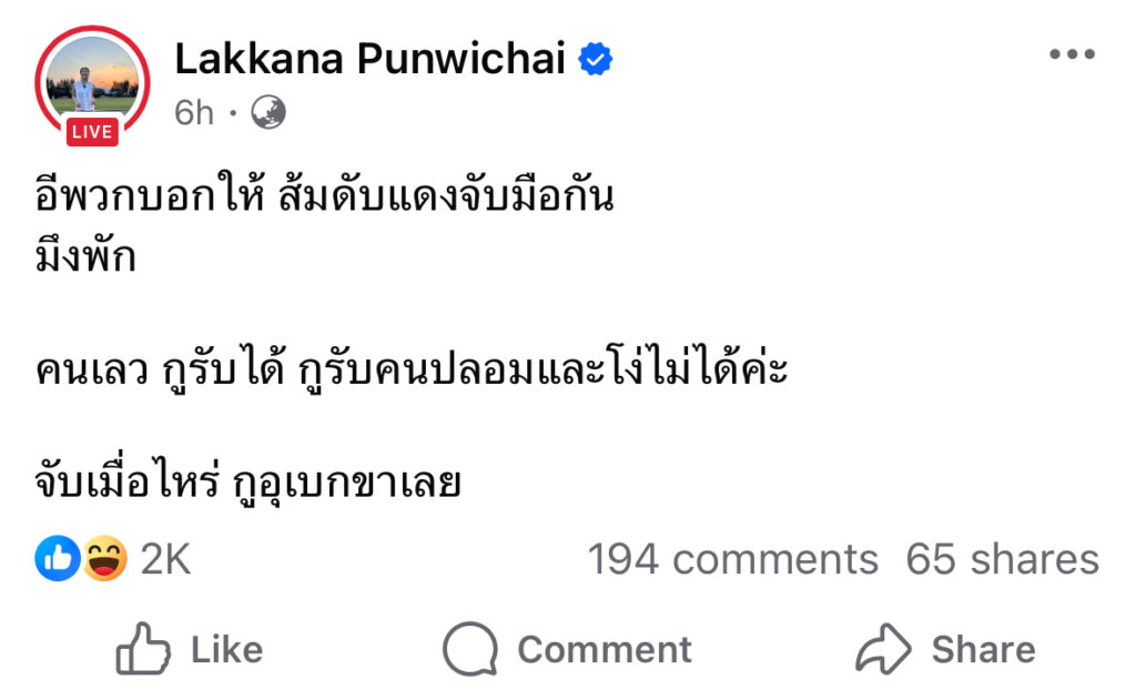 ผู้สื่อข่าวโตโจ้นิวส์รายงานว่า นางสาวลักขณา ปันวิชัย หรือ แขก คำผกา พิธีกรชื่อดัง โพสต์ข้อความผ่านทวิตเตอร์หรือเอ็กซ์ ระบุว่า