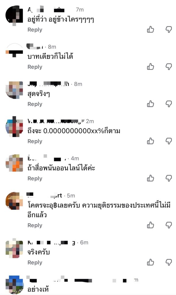 ต่อมา ชาวเน็ตแห่เข้ามาแสดงความคิดเห็น เช่น อยู่ที่ว่า อยู่ข้างใครๆๆๆๆ, บาทเดียวก็ไม่ได้, โคตรจะอุ฿เลยครับ ความยุติธรรมของประเทศนี้ไม่มีอีกแล้ว