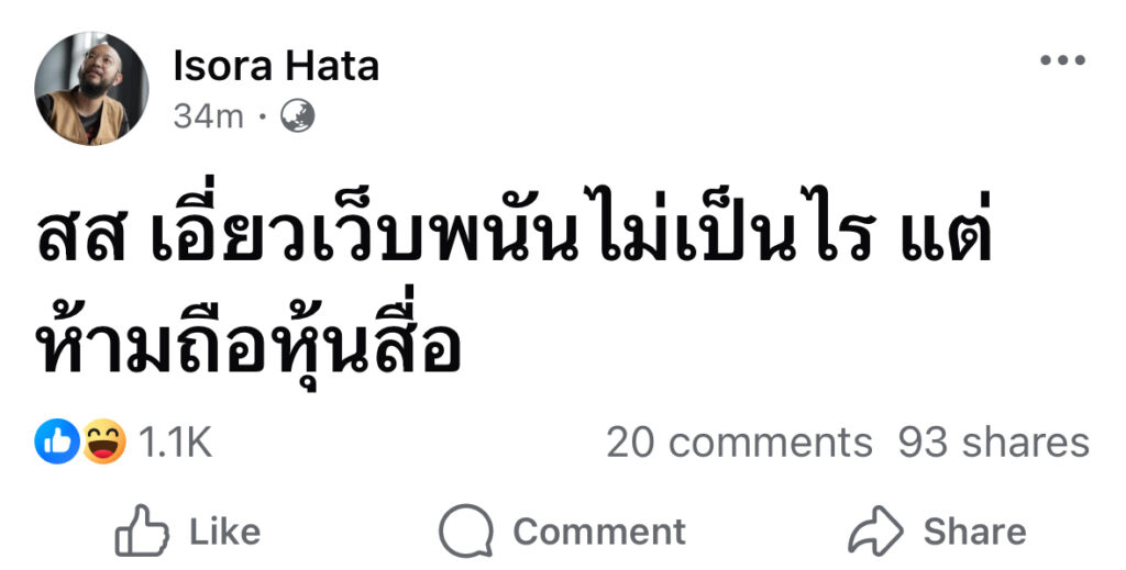 ผู้สื่อข่าวโตโจ้นิวส์รายงานว่า อิสระ ฮาตะ ยูทูบเบอร์ชื่อดังจากช่อง RUBSARB โพสต์ข้อความระบุว่า