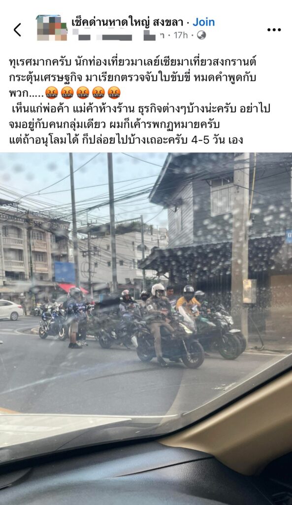 ผู้สื่อข่าวโตโจ้นิวส์รายงานว่า ผู้ใช้เฟซบุ๊กรายหนึ่ง โพสต์รูปภาพและข้อความผ่านกลุ่ม เช็คด่านหาดใหญ่ สงขลา โดยระบุว่า