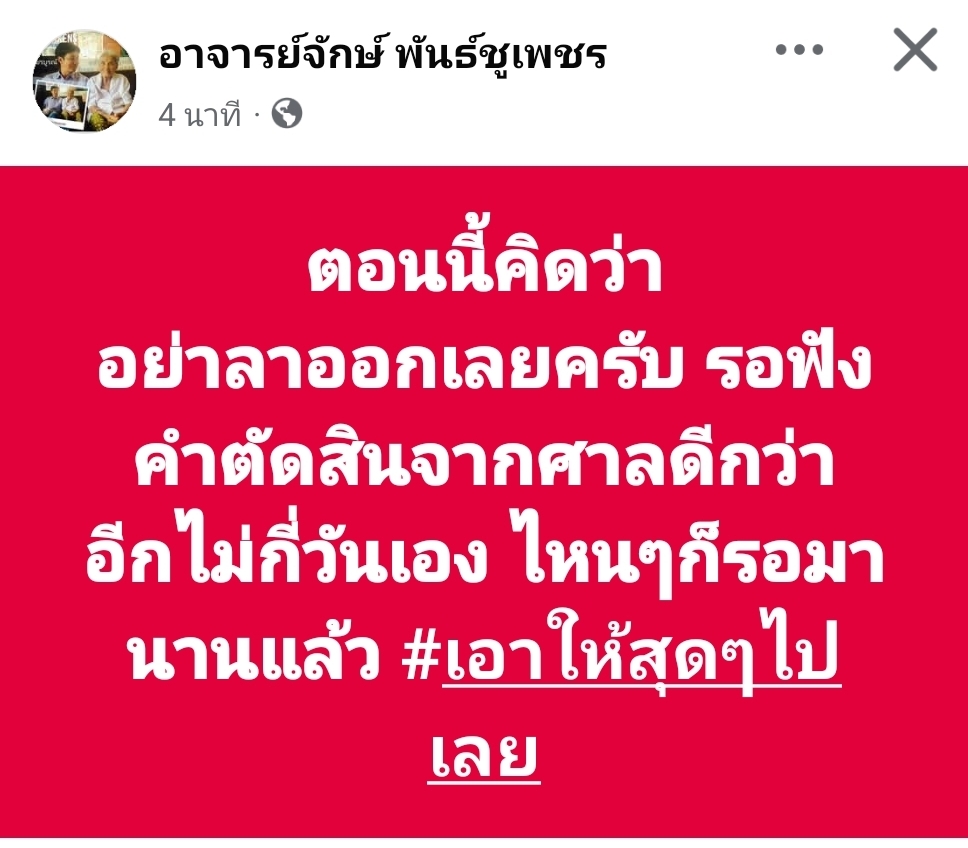 อ.จักษ์ แนะ รอฟังคำตัดสินจากศาลดีกว่า อีกไม่กี่วันเอง