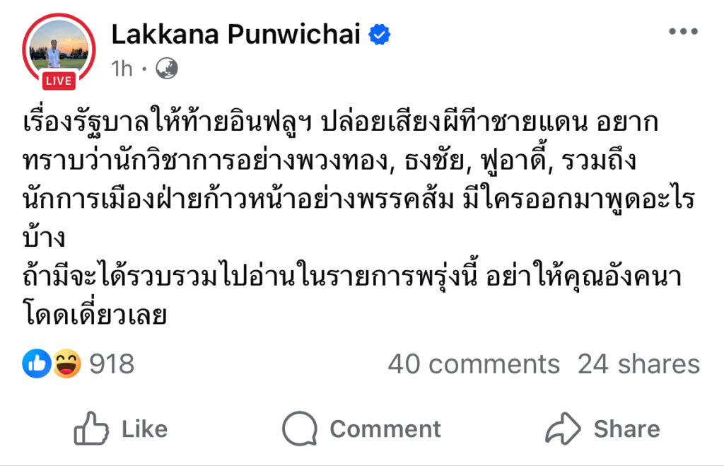 เรื่องรัฐบาลให้ท้ายอินฟลูฯ ปล่อยเสียงผีทีาชายแดน อยากทราบว่านักวิชาการอย่างพวงทอง, ธงชัย, ฟูอาดี้, รวมถึงนักการเมืองฝ่ายก้าวหน้าอย่างพรรคส้ม มีใครออกมาพูดอะไรบ้าง