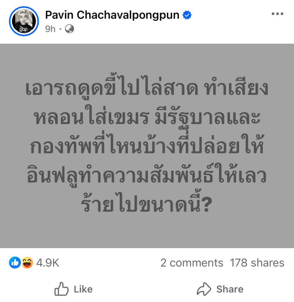 ปวิน โพสต์แรง รัฐบาลและกองทัพปล่อยให้อินฟลูฯ ทำความสัมพันธ์ให้เลวร้ายขนาดนี้ได้ไง??