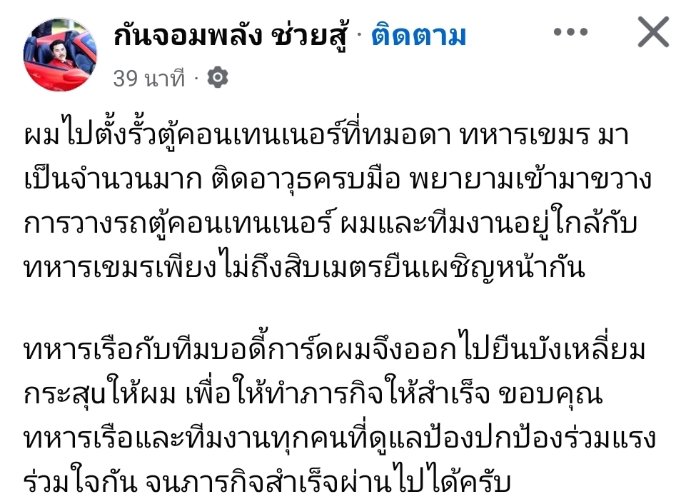 กันจอมพลัง เผย ทหารเขมร มาเป็นจํานวนมาก ติดอาวุธครบมือ พยายามเข้ามาขวาง วางตู้คอนเทนเนอร์