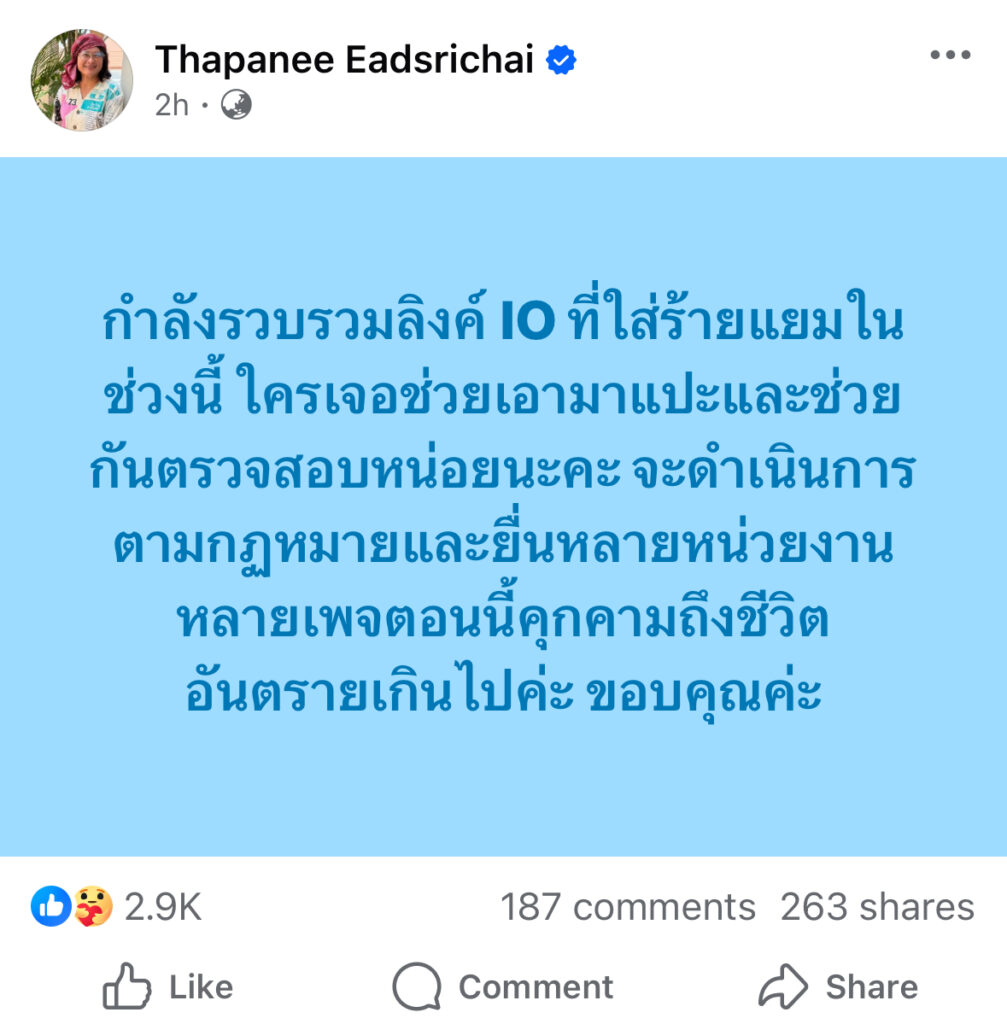 แยม ฐปณีย์ เผย ตามคดี สส.กมลศักดิ์ โดน IO โจมตีใส่ร้าย หลายเพจคุกคามถึงชีวิต