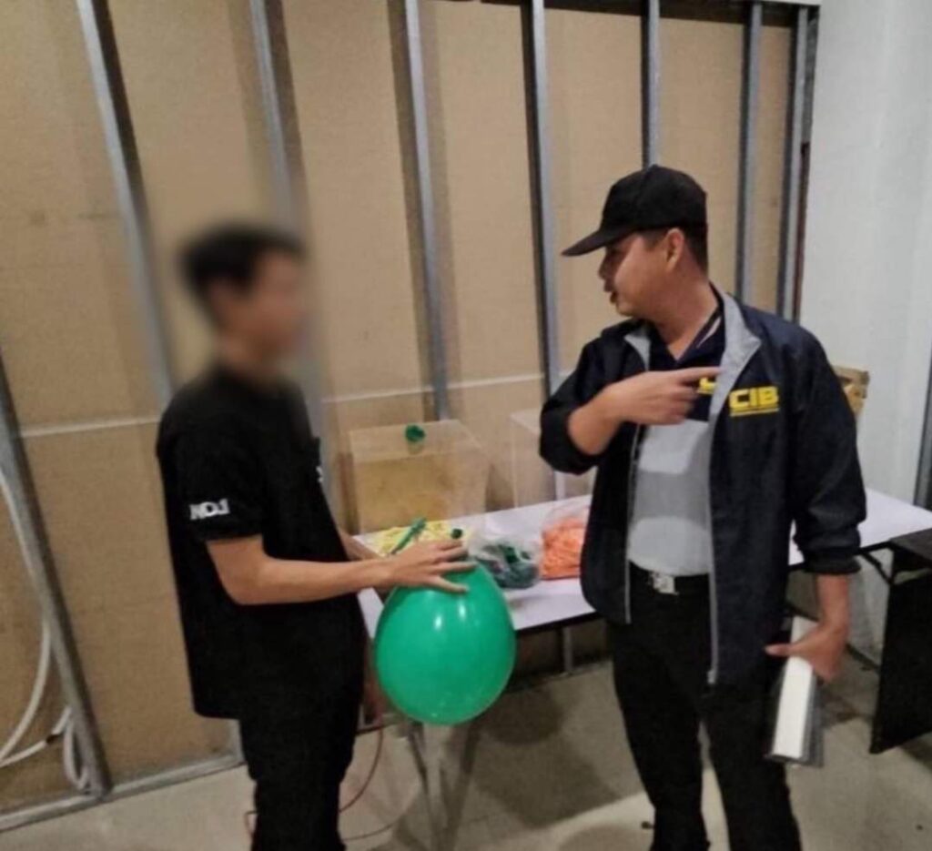 เจ้าหน้าที่จึงได้ยึดไว้เป็นของกลางตรวจสอบหนังสือเดินทาง พบว่าหนังสือเดินทาง ได้รับอนุญาตให้อยู่ในราชอาณาจักร ถึงวันที่ 13 ก.พ. 2568 แต่ไม่มีใบอนุญาตทำงาน และจากการตรวจสอบตามถังขยะใต้โต้ะ และบนโต๊ะที่จัดไว้สำหรับนั่งสูบแก๊สหัวเราะ พบลูกโป่งใช้แล้ว รวมจำนวน 29 ใบ จึงได้ยึดไว้เป็นของกลาง