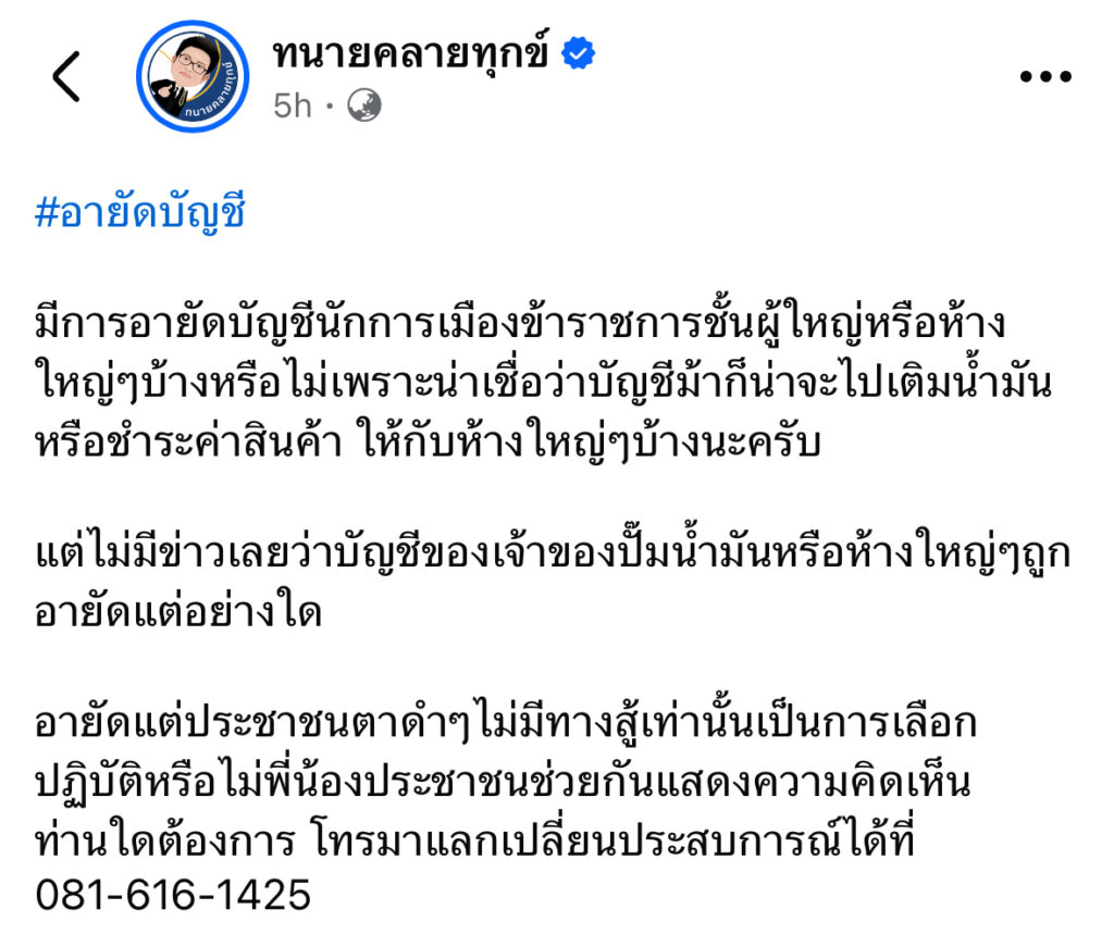 แต่ไม่มีข่าวเลยว่าบัญชีของเจ้าของปั๊มน้ำมันหรือห้างใหญ่ๆถูกอายัดแต่อย่างใด