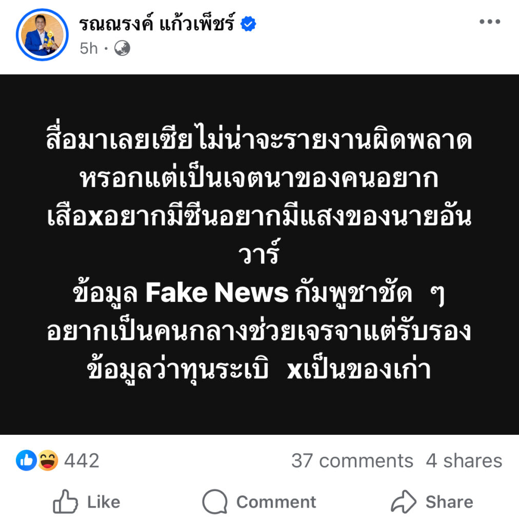 ผู้สื่อข่าวโตโจ้นิวส์รายงานว่า นายรณณรงค์ แก้วเพ็ชร์ ทนายความชื่อดัง โพสต์ข้อความผ่านเฟซบุ๊ก ระบุว่า