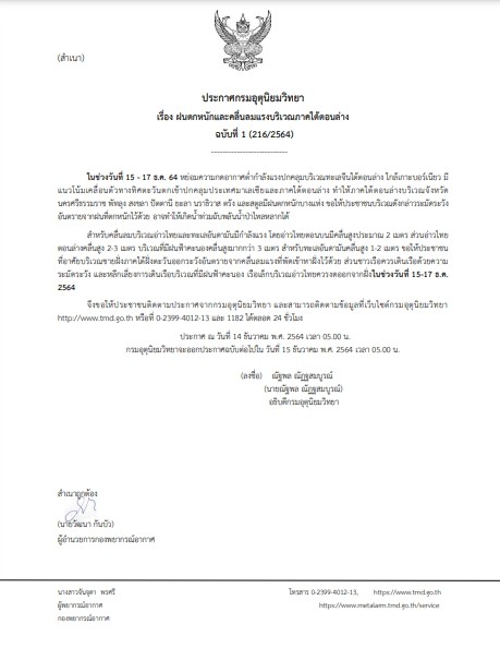 กรมอุตุนิยมวิทยาจะออกประกาศฉบับต่อไปใน วันที่ 15 ธันวาคม พ.ศ. 2564 เวลา 05.00 น.