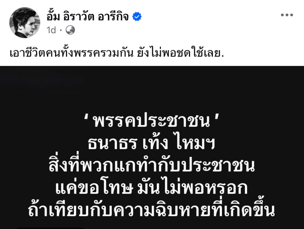 หมออั้ม ลั่นแรง ปมพรรคประชาชนขอโทษประชาชน มันไม่พอสำหรับความเสียหายที่เกิดขึ้น